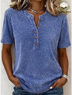 Femmes Chemise Henley Lavage à l'acide Lavage vintage Couleur Unie ancien Mode Élégant Manche Courte Col de chemise Hauts Réguliers Occasionnel Plage Bleu Jaune Rose Claire Violet Orange Été Printemps