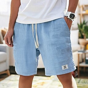 Homme Shorts Shorts d'été Shorts de plage Short décontracté Cordon de serrage Avec Poches Taille Élastique Uni Confort Respirant Court Plage Vacances Fête Hawaïen Boho Blanche Vert Claire