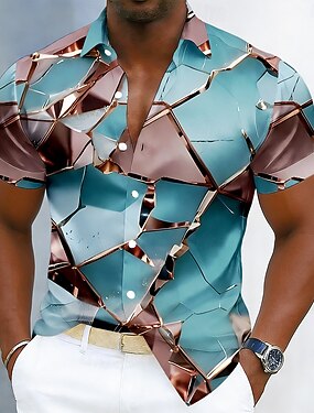 Homme Géométrique Verre Cassé Chemise Chemise en satin Chemise habillée Manche Courte Mode Décontractée Quotidien Vacances Été Printemps Col Rabattu Chemises à Col Impression 3D Chemises boutonnées