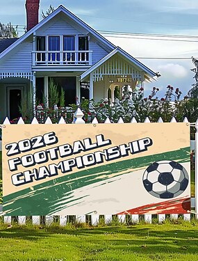 Bannière de porte de garage pour le championnat de football 2026, avec des joueurs de football et des ballons, des motifs géométriques colorés, une décoration extérieure pour la maison et le jardin,