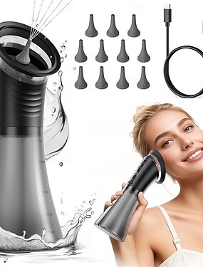 Système d'irrigation auriculaire à l'eau, outil électrique d'extraction du cérumen avec 10 embouts de rechange, nettoyeur d'oreilles rechargeable par USB-C pour une utilisation en toute sécurité &Kit