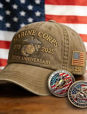 Casquette de baseball rétro délavée commémorant le 250e anniversaire du Corps des Marines des États-Unis, avec 2 pièces commémoratives, casquette vintage brodée du 250e anniversaire du Corps des