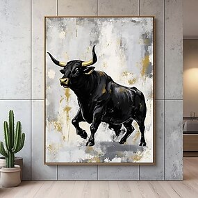 Peinture à l'huile originale d'un taureau, œuvre d'art abstraite faite main sur toile, grand tableau de taureau noir peint à la main sur toile, art mural texturé