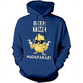 Hoodie pour homme - T-shirt graphique humoristique 'C'est l'heure de la bière Madafakas' sweat-shirt à capuche à manches longues avec impression drôle