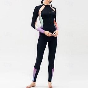 Femmes Rashguard intégral Une pièce Patchwork Protection UV Élastique manche longue Maillot de Bain Maillot de bain Surf Plongée en apnée Natation Printemps
