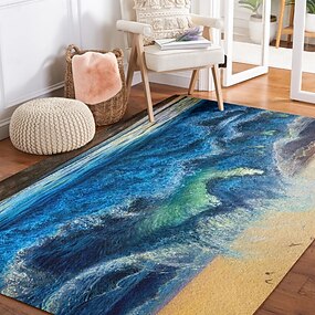 Tapis vagues océaniques et plage pour le salon et la chambre tapis côtier en faux cachemire doux antidérapant lavable en machine Couche de Centerville par Dakota Daetwiler