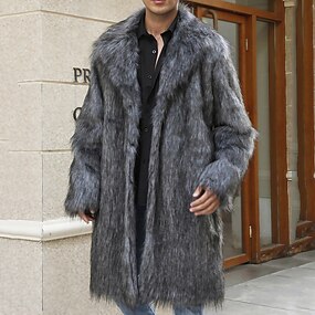 Homme Manteau d'hiver Veste d'Hiver Manteau en fausse fourrure Extérieur Usage quotidien Chaud Poche Automne Hiver Plein Mode Vêtement de rue Revers Normal Noir Blanche Jaune Marron Gris Claire Veste