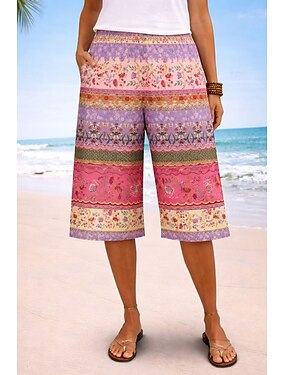 Femmes Chinos Shorts Vacances ancien Style Ethnique Longueur Genou Taille haute Fleuri Graphique Taille Élastique Confort Non Elastique Occasionnel Quotidien Vacances Bleu Blanche Rose Claire Vert