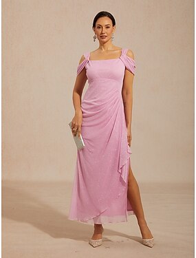 Femmes Robe maxi Robe fourreau Élégant robe demoiselle d honneur Cocktail Froncé A Volants Tulle scintillant Coupe régulière Couleur Unie Sans manches Bretelle Top épaules dénudées Rose Claire