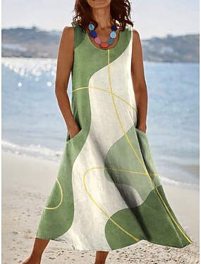 Femme Robe mi-longue Robe casual Robe Débardeur Décontractées Vacances du quotidien Standard Géométrique Sans Manches Dos nu Kaki Eté