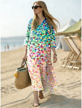 Femmes Robe maxi Robe d'Été Robe trapèze Vacances Occasionnel Plage Sortir Coupe régulière Fleuri Graphique Manche Courte Col en V Bleu Vert Printemps Automne