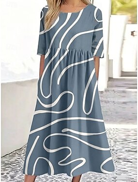 Femmes Robe Midi Robe fourreau Vacances Occasionnel Coupe Ample Graphique Rayure Manche Courte Col ras du cou Bleu Violet Marron Vert Été Printemps