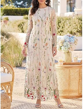 Deux Pièces Ligne A Longueur cheville Robe d'invité de mariage petite robe blanche Élégant Quotidien Petites Robes Blanches manche longue Col ras du cou Mariage avec Dentelle