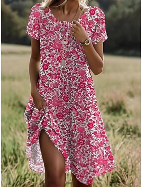 Femmes Robe Midi Robe Décontractée Robe T-Shirt Robe d'Été Robe trapèze Vacances Occasionnel Boho Plage Coupe régulière Fleuri Graphique Manche Courte Col en V Bleu Noir Rose Claire Rouge Ét