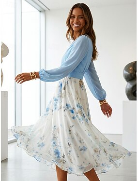 Femmes Robe Midi Robe de Soirée Robe de Cocktail Robe fourreau Robe en Chiffon Moderne Soirée Occasion Spéciale Coupe régulière Fleuri manche longue Col ras du cou Bleu Noir Rose Claire Printemps