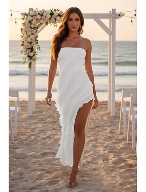 Fourreau Colonne Longueur au sol Robe d'invité de mariage petite robe blanche Élégant Petites Robes Blanches manche longue Épaules Dénudées Mariage avec Froncé