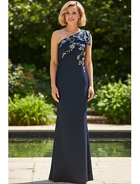 Fourreau Colonne Longueur au sol Robe de Cérémonie Robe de soirée Robe de Mère de Mariée Sans manches Une Épaule Élégant ancien Formel Satin avec Noeud(s) Broderie