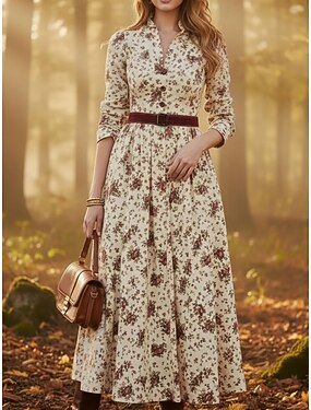 Femmes Robe maxi Robe Chemise Robe Décontractée Robe Fleurie Élégant Mode Moderne Extérieur Vacances Sortir Coupe régulière Fleuri Manche Courte Col en V Abricot Été Printemps