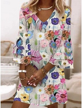 Femmes Mini Robe Robe d'Été Robe trapèze Bohème Vacances Occasionnel Soirée Coupe régulière Fleuri Graphique Abstrait Manche 3/4 Col en V Rose Claire Violet Bleu clair Printemps Automne