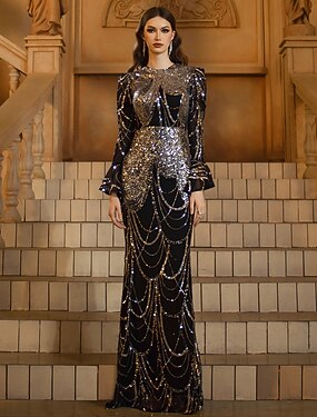Sirène Trompette Fourreau Colonne Longueur au sol Broderie perlée Robe de Cérémonie Robe de la mère de la mariée Robes de Bal Robe de Soirée Tenue de soirée Élégant Éclat manche longue Col ras du cou