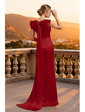 Fourreau Colonne Longueur au sol Robe d'invité de mariage Robe de Cérémonie Robe de soirée Robe de Soirée Élégant Demi Manches Épaules Dénudées Formel Satin avec Noeud(s)