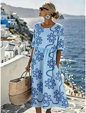 Femmes Robe Midi Robe fourreau Vacances Occasionnel Fête Coupe Ample Fleuri Graphique Manche Courte Col ras du cou Bleu Rose Claire Violet Vert Été Printemps