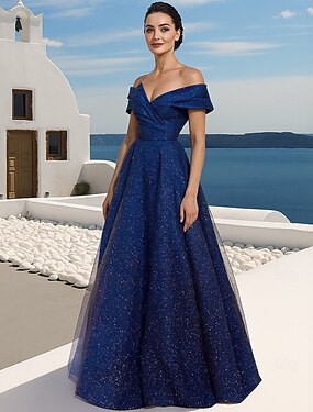 Robe de soirée formelle longueur sol A-Line Robe de bal Robes de Quinceanera Élégante Fête Sans Manches Épaules Nues Soirée Mariage avec Paillettes Glitter Fente