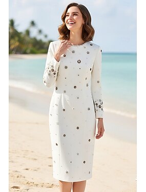 Robe de soirée élégante en colonne fourreau longueur genou robe cocktail robe de soirée avec manches longues à col rond soirée mariage avec cristaux et perles