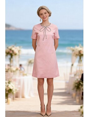 Fourreau Colonne Mi-long Robe de Bal Robe de bal Robe d'invité de mariage Robes pour invités de mariage Élégant Quotidien Manche Courte Col ras du cou Formel robe demoiselle d honneur Dos Bénitier