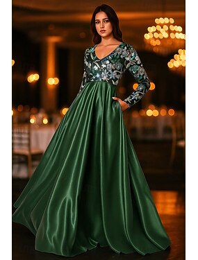 Fourreau Colonne Longueur au sol Robes à paillettes Robe de Mère de Mariée manche longue Col en V Élégant Satin Pailleté avec Ceinture / Ruban