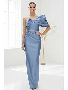 Fourreau Colonne Longueur cheville Robe de Soirée Robe de Cocktail Robe d'invité de mariage Robes pour invités de mariage Élégant manche longue Épaules Dénudées Mariage avec Froncé