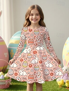 Pâques FILLE 3D Graphique Lapin Robe manche longue Impression 3D Printemps Automne Quotidien Vacances Soirée Occasionnel Princesse Beau Enfants 4-12 ans Robe Décontractée Robe trapèze Mi-long Coupe