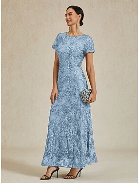 Robe de Soirée A-Line Élégante Robe Formelle Mariage Longueur Totale Manches 3/4 Col en V Sequins avec Sequins