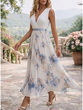 Femmes Robe maxi Robe de Cocktail Robe d'invité de mariage Robe en Chiffon Élégant Basique Occasionnel Quotidien Vacances Coupe régulière Uni Sans manches Col en V Blanche Violet Été
