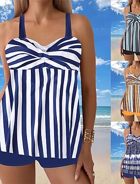 Tankini pour femmes 2 pièces maillot de bain culotte garçon dos nu contrôle du ventre taille haute slim vacances plage rayé animal col en U sans manches