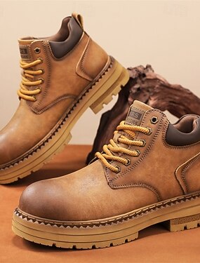 Bottes à lacets pour hommes en similicuir marron avec semelle épaisse - chaussures élégantes et pratiques pour les sorties décontractées, le travail et le quotidien