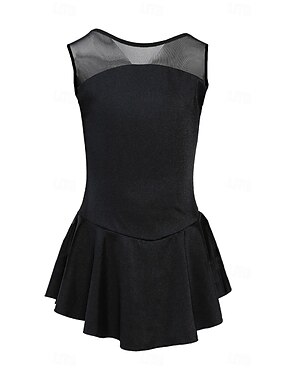Robe de patinage artistique Femmes Fille Patinage Robe Noir Patchwork Maille Haute Élasticité Entraînement Compétition Tenue de Patinage Classique cristal pailleté Sans manches Patinage sur glace