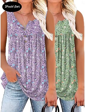 Paquets multiples 2 pièces Femmes Col en V Sans manches Jaune + Bleu Débardeur T-shirt sans manches T-shirt Floral Occasionnel Quotidien Polyester Été