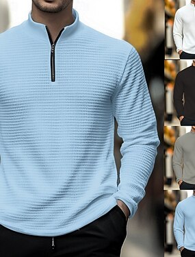 Homme Chemises Polo Gaufre Texturé Sport & Loisir Occasionnel Sans Col manche longue Mode Confortable Uni Zip Up Printemps & Automne Bleu Noir Blanche Gris Chemises Polo Gaufre