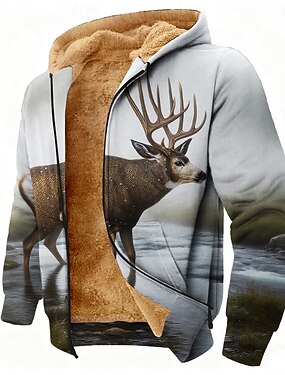 Homme Cerf Polaire Sweat à capuche Veste Sweatshirt Classique Militaire Chasse manche longue Col ras du cou Extérieur Camping Blanc 1 Blanche Gris Blanc 2 Zip Up Automne Hiver Designer S M L XL 2XL
