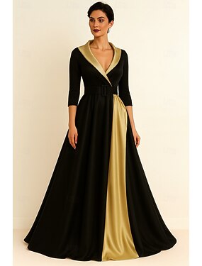 Femmes Robe smoking Ligne A Mariage Formel robe demoiselle d honneur Satin Élégant Bloc de Couleur Manche Courte Longueur au sol Col châle