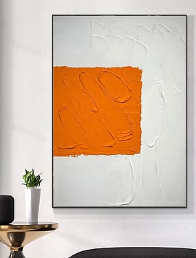 peinture à l'huile faite à la main sur toile, décoration murale, texture abstraite wabi-sabi, blanc, orange, pour la décoration intérieure, peinture roulée sans cadre, non tendue