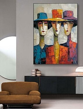 Peinture à l'huile artisanale sur toile, décoration murale abstraite avec figures, pour la décoration intérieure. Toile tendue sur châssis ou roulée sans cadre.