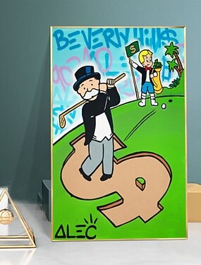 fait à la main peint à la main peinture à l'huile monopole millionnaire argent street art moderne abstrait alec monopole peinture décoration de la maison décor toile roulée pas de cadre non tendu