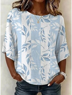 Femmes Chemisier Imprimé Fleuri Graphique Bohème ancien Tropical Manche 3/4 Col ras du cou Hauts Longs Occasionnel Quotidien Vêtements de vacances Bleu Été Printemps