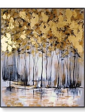 Peinture à l'huile faite à la main toile art mural décor original or bambou peinture abstraite arbre peinture pour la décoration intérieure avec cadre étiré/sans cadre intérieur peinture