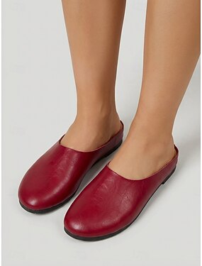 Mules rouges en cuir véritable pour femme – mules minimalistes et confortables, sandales légères en cuir de vachette idéales pour les voyages et la maison &tenues décontractées quotidiennes