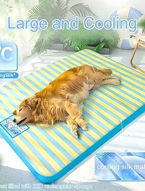 Tapis rafraîchissant amovible à rayures avec motif de chien de plage &Tapis rafraîchissant lavable pour chiens et chats, accessoire pour niche, maison pour chat ou pour chien.