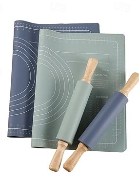 Tapis de pétrissage en silicone alimentaire, antiadhésif, pour pâte à pizza, avec manche en bois, 60 x 40 cm.