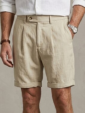 Homme Shorts Shorts en Lin Robe Short Shorts d'été Boutons Couleur Pleine Confort Respirant Longueur Genou Occasionnel Quotidien Extérieur Mode Style Classique Blanche Kaki Non Elastique